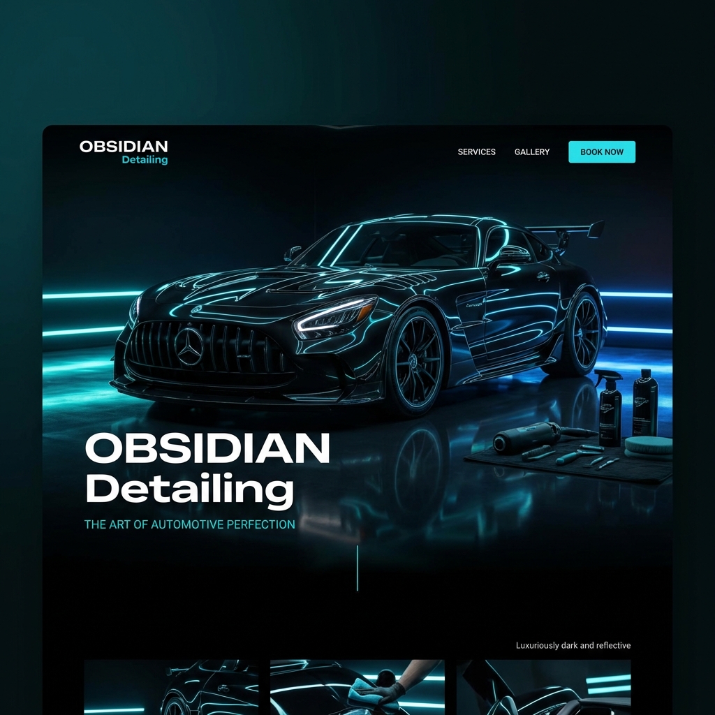 Precision detailing for car enthusiasts. Ceramic coatings, paint correction, and mobile service with bold automotive branding.